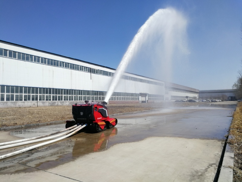 本產(chǎn)品采用四驅(qū)履帶輪式全地形越野底盤(pán),具有超高上下樓梯平衡性能和越野性能,整機(jī)尺寸小,重心低,最大爬坡角度40°,垂直越障≥400mm,整機(jī)配備TFT季風(fēng)120L水、泡沫炮,最大射程水90m,混合液80m,具有很強(qiáng)的抗電磁干擾性。